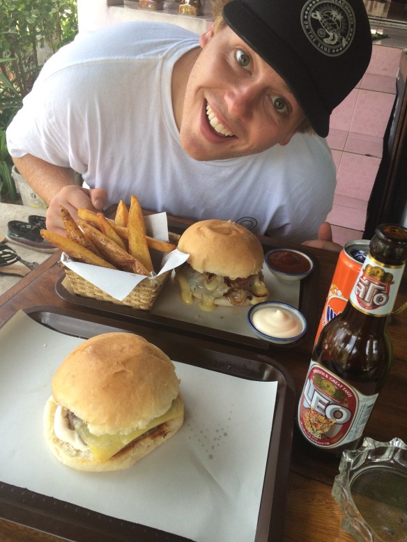 Food on the island is delicious, cheap, and you’ve got a wide variety to choose from. You can get pizza and pasta at one of the Italian places with prices ranging between 80-300 baht (3-9 USD) There’s an indian place, burger places, seafood, and of course so many thai resturants. You can get food from street carts for a nice 60 baht (2 USD) It really just depends where you go and what you’re in the mood for. Walk around and look at the menus, they are always on display. Most nights we try to eat cheap but we also do splurge once in a while. And when I say splurge I mean we’ll go out and spend 1000 baht on two entrees, an appetizer or two and a few drinks. 30 USD for a nice date night is not too shabby.