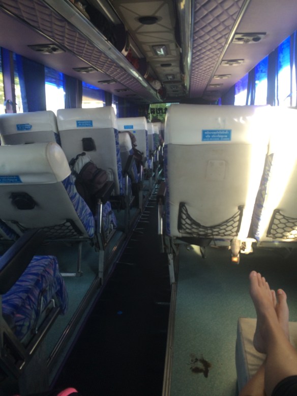 We hopped on the night boat at 11pm on Sunday night which was headed to Chumphon. We were assigned a bunk bed and each given a pillow and blanket. We headed to the roof, sandwiched ourselves between the blankets and cuddled as we dozed off under the stars sharing an iPod. We woke up a few hours later, uncomfortable from the steal boat we lay on and went down to our bunks. We cuddled in a twin bed and immediately fell back to sleep. I woke up first around 5am after hearing the boat horns and realizing we were at port, I woke Mike up. We gathered our backpacks and headed to shore. At the pier a van was already there to pick us up and take us to the bus stop. An hour passes and we are on the 9 hour bus up to Bangkok. We settle in the back handicap seat with no seat in front of us hoping no handicap personnel would load on, luck was in our favor. We got comfortable,